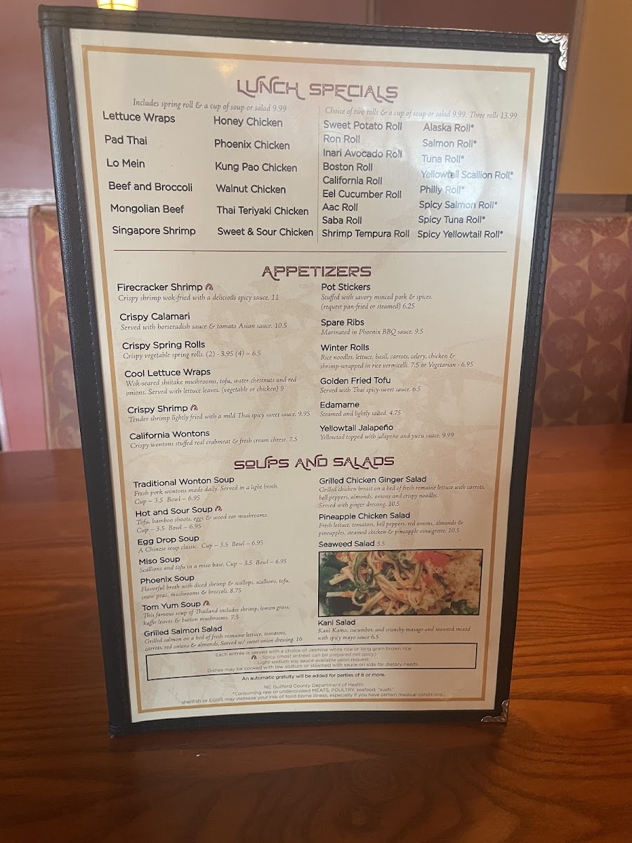 Welcome to Phoenix Asian Cuisine, a hidden gem in Greensboro, NC, where the vibrant flavors of Asia unite on your plate. Located at 1641 New Garden Rd, this restaurant beckons with a menu that tantalizes the senses and satisfies cravings.